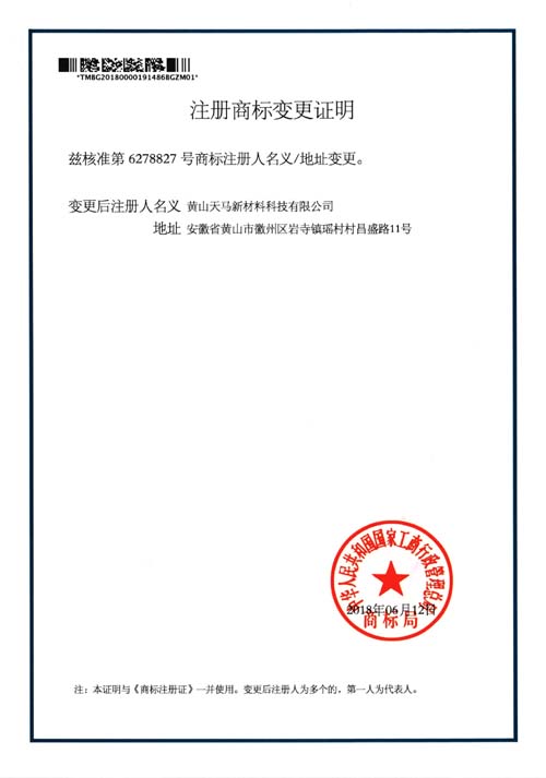商標變更證明(2018年)
